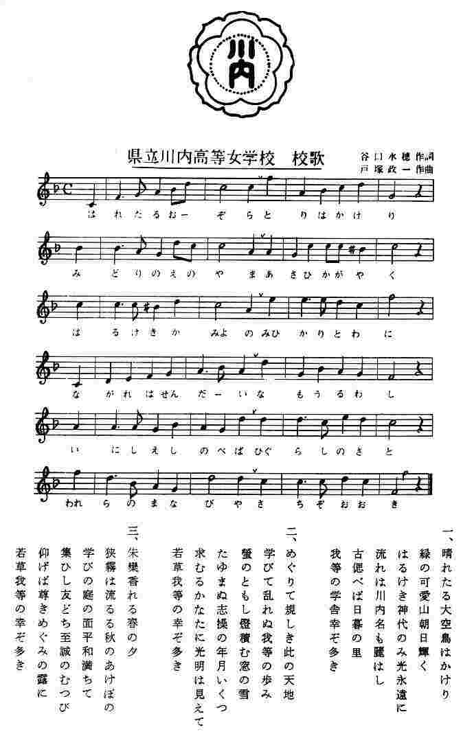 川内高等学校校歌(MIDIによる演奏が聴けます。)